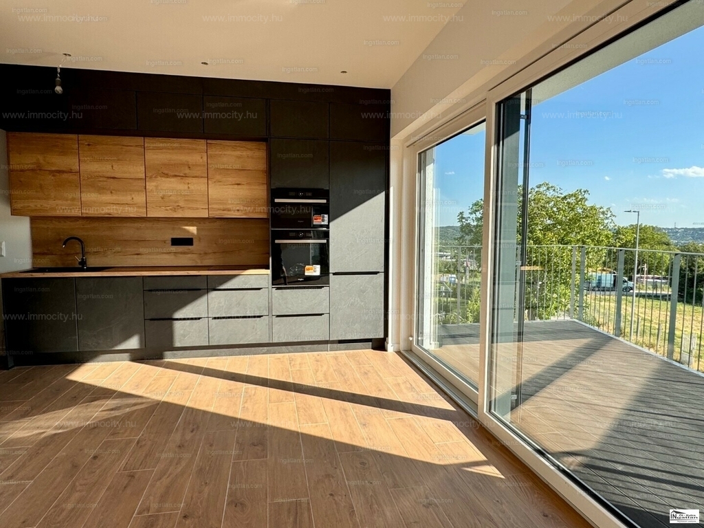 Ez az első emeleti, 81 m²-es lakás nemcsak kényelmet, hanem lélegzetelállító kilátást is kínál. A 10 m²-es saját teraszról páratlan panoráma nyílik a környező zöldövezetre – ideális reggeli kávézásokhoz vagy egy nyugodt esti borozáshoz.